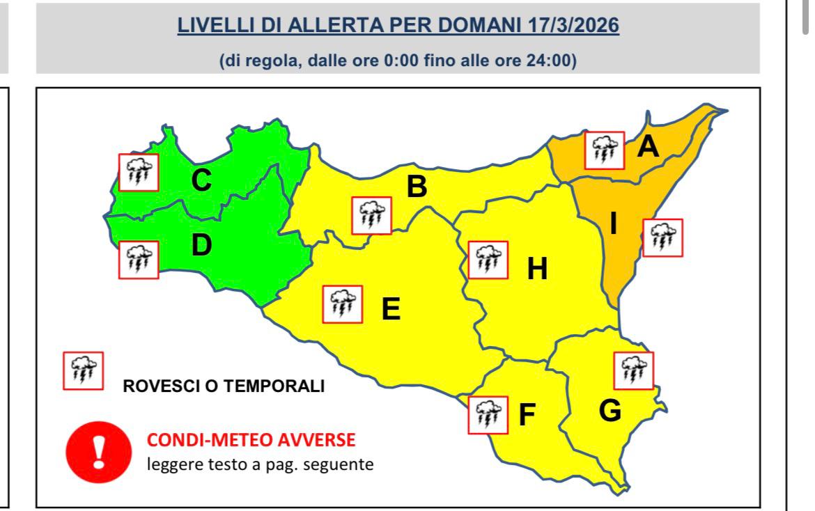 La Protezione Civile conferma il rischio meteo-idrogeologico: temporali intensi, vento forte e mare agitato. Attenzione ad allagamenti e mareggiate