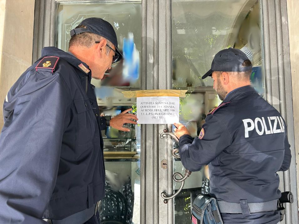 Il provvedimento di sospensione ha una durata di 7 giorni ed è stato emesso dal Questore di Catania, secondo le prerogative previste dall’art. 100 del Testo Unico delle Leggi di Pubblica Sicurezza.