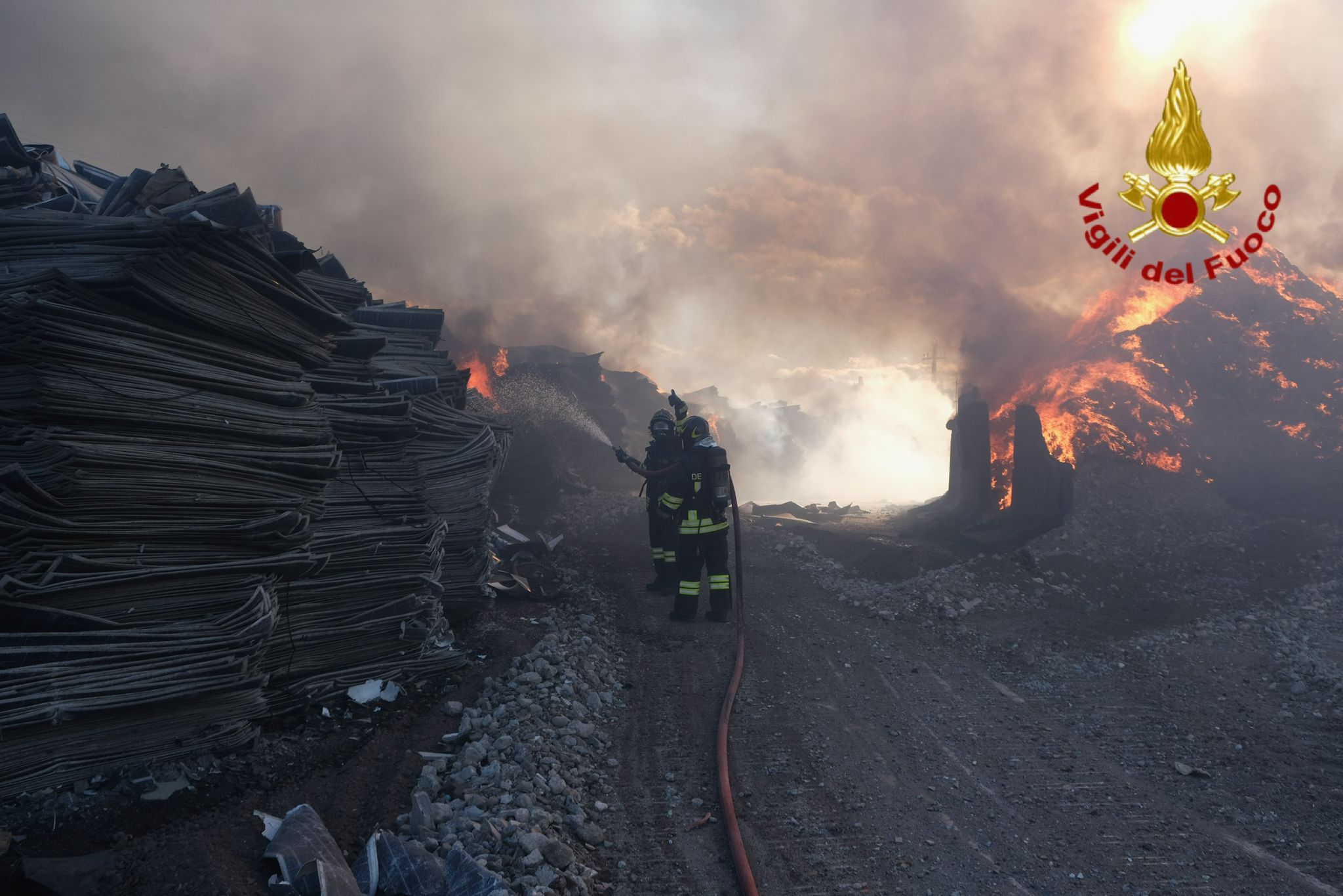 Belpasso, incendio ditta smaltimento elettrodomestici, ancora in corso intervento pompieri