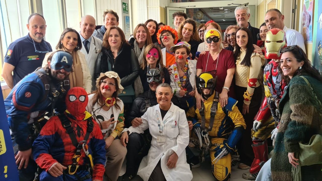 Al termine della suggestiva discesa, i Supereroi hanno fatto il loro ingresso nel reparto di Pediatria, hanno incontrato i piccoli degenti e hanno regalato attimi di autentica felicità: tra sorrisi, abbracci e qualche selfie, hanno donato anche uova di Pasqua, trasformando la visita in una festa carica di emozione e dolcezza, condivisa anche con il personale sanitario del reparto.