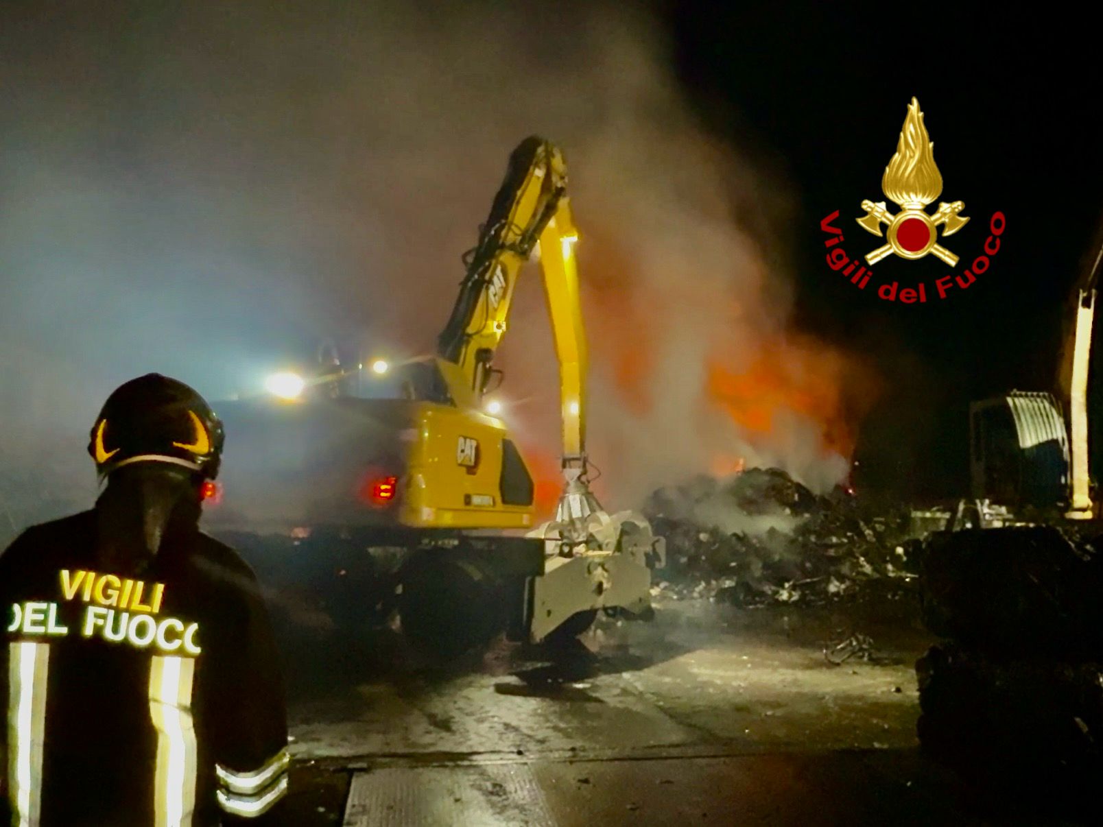 Il personale dei Vigili del Fuoco ha provveduto a circoscrivere l’area interessata dalle fiamme, avvalendosi anche di un mezzo meccanico per la movimentazione della massa di materiale coinvolto. Non si ha avuto notizia di feriti o persone coinvolte. Presente sul posto anche personale della Polizia di Stato e personale sanitario del Servizio 118