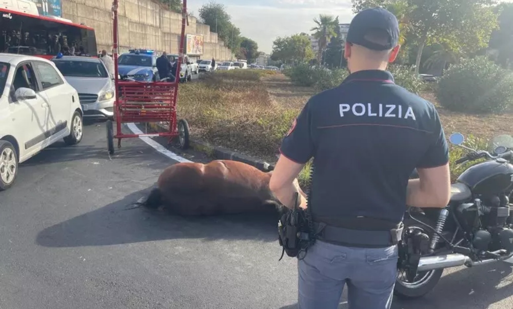 A Catania un cavallo, che trainava un calesse, è morto lungo la circonvallazione. Si è accasciato, probabilmente per un malore, mentre percorreva la rotatoria del torna indietro, in direzione Ognina, nei pressi dell’incrocio con via Santa Sofia.
