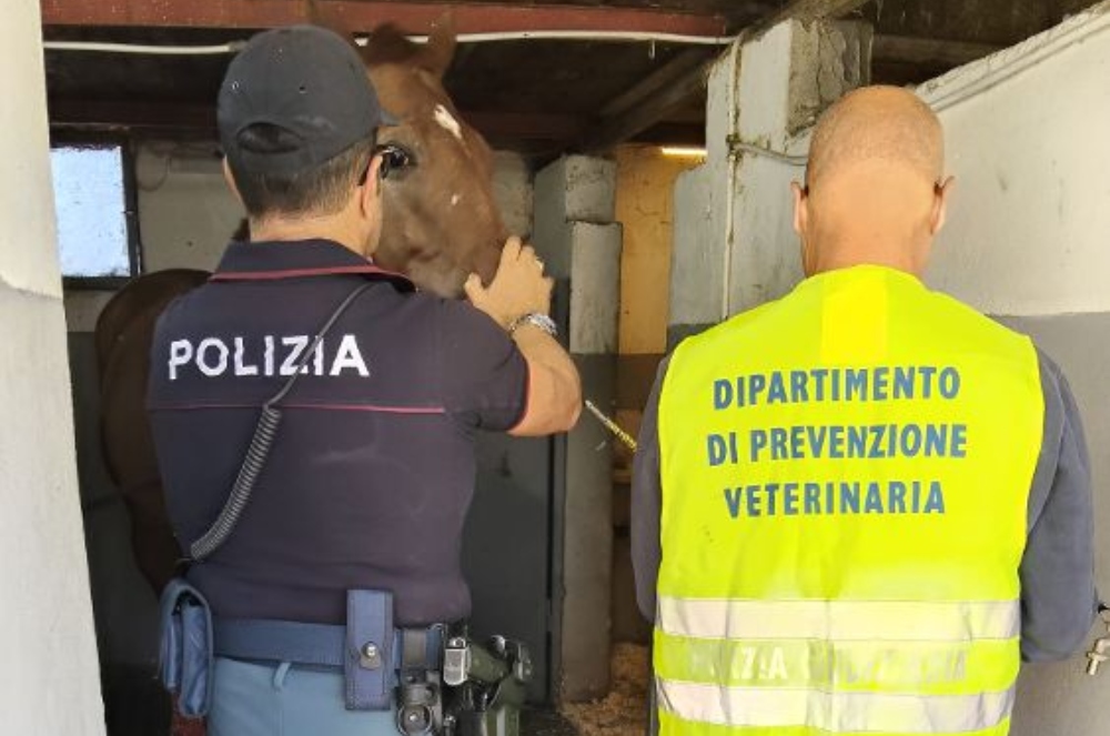 Ad intervenire gli agenti del Reparto a Cavallo dell’Ufficio Prevenzione Generale e Soccorso Pubblico della Questura di Catania, insieme al personale del Dipartimento di Prevenzione Veterinaria – Servizio di Sanità Pubblica Veterinaria dell’Asp di Catania. Gli accertamenti, eseguiti all’interno di un sito ubicato in via Gramignani, nel quartiere San Cristoforo, sono stati effettuati allo scopo di verificare le condizioni igieniche e di salute di due cavalli tenuti all’interno di una struttura non autorizzata.