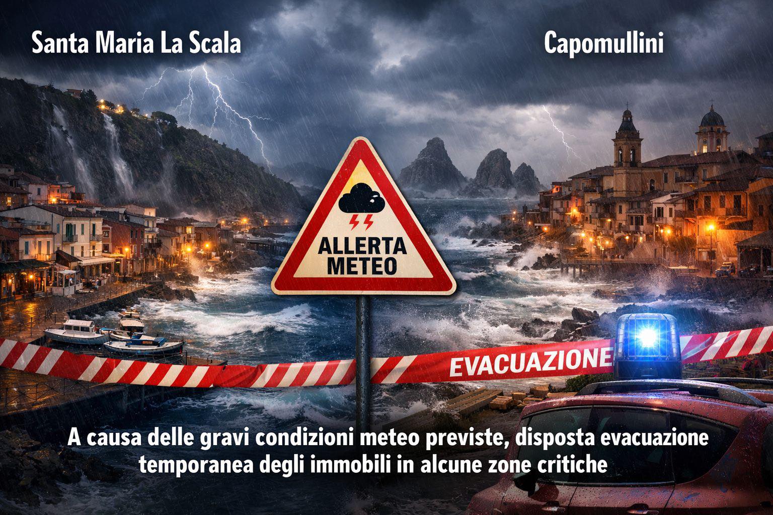 Ad Acireale il sindaco Roberto Barbagallo, vista l’allerta rossa, ha disposto l’evacuazione temporanea degli immobili nella frazione di Capo Mulini, in particolare quelli che si trovano lungo Vie Garitta e Rapallo e Lungomare Martinez. Evacuazione anche per gli immobili della frazione di Santa Maria La Scala, ricadenti in via Molino.