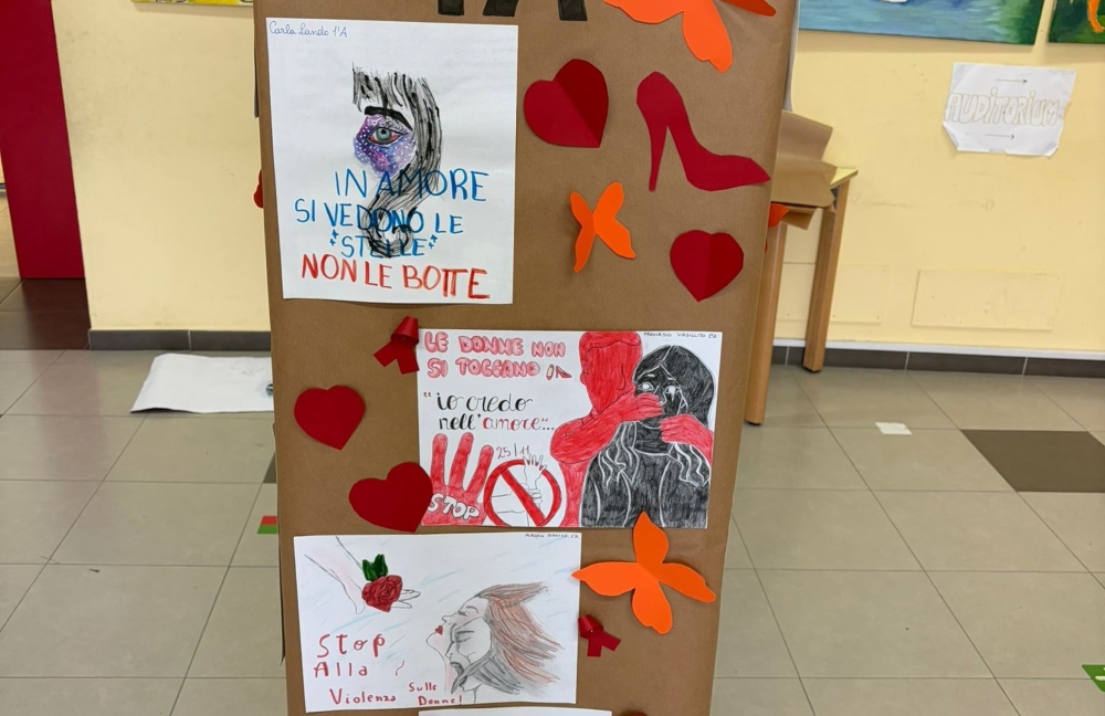 Gli alunni, guidati dai docenti, hanno realizzato nei giorni precedenti una serie di disegni dedicati al tema, con i quali i pilastri dell’Istituto sono stati trasformati in un percorso visivo volto a promuovere consapevolezza e responsabilità. “Contro la violenza sulle donne. Un messaggio chiaro e forte alle nuove generazioni, nostra speranza e certezza di un futuro migliore – ha dichiarato il sindaco- Si è particolarmente sensibili al tragico fenomeno e grazie agli educatori – sempre più informati e preparati, su tutti insegnanti e famiglie – non possiamo non lavorare fiduciosi sulla riduzione dei casi, continuando con un impegno costante, restando presenti accanto ai più giovani, osservandoli e favorendo un confronto fondamentale per la loro crescita. La scuola assume un ruolo strategico e importantissimo, svolgendo attività educative essenziali e offrendo un contributo formativo straordinario”.