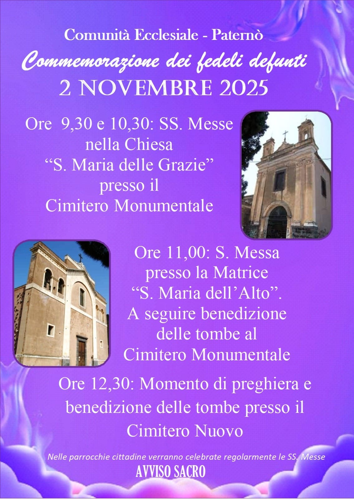 In Primo Piano Paterno’, celebrazioni in suffragio per i cari defunti Nella giornata della Commemorazione dei defunti, messe presso il cimitero monumentale e benedizione delle tombe del vecchio e nuovo cimitero Pubblicato 4 ore fa il 1 Novembre 2025 di Maria Gabriella Cirino Share Tweet Voci correlate:#2 novembre #Sante Messe #Matrice #chiesa S. Maria delle Grazie #benedizione tombepaternò Potrebbero interessarti Paternò, incidente in via Machiavelli, tre feriti non gravi Paternò, fuggono alla vista dei Carabinieri: arrestati due giovani di 20 e 19 anni Paternò, la città sostiene Delia Buglisi, protagonista a X Factor 2025 Ultim'ora Più letti Video Cronaca1 ora fa Catania, deferito 35enne catanese per violazione al daspo urbano In Primo Piano3 ore fa Caltagirone, sospesa attività centro scommesse: era ritrovo per pregiudicati In Primo Piano4 ore fa Paterno’, celebrazioni in suffragio per i cari defunti In Primo Piano5 ore fa Catania, Camper della Prevenzione in tour per i 58 Comuni della provincia Cronaca6 ore fa Piedimonte Etneo, spaccio dalla finestra di casa: denunciato dai Carabinieri Cronaca8 ore fa Aci Catena, criticità igienico-sanitarie e strutturali nel cimitero: diverse aree sotto sequestro Cronaca2 mesi fa Nicolosi, la lettera di Giordana Di Stefano: “Cara bambina mia, ti scrivo prima ancora di metterti al mondo” Cronaca2 mesi fa Taormina, pestaggio shock in discoteca: in ospedale ragazzo di S.M. di Licodia e la fidanzata di Paternò Cronaca2 mesi fa Adrano, operazione della Polizia di Stato, diversi fermi Cronaca2 mesi fa Adrano, operazione antimafia in città, il plauso del sindaco Mancuso Cronaca3 mesi fa Caltagirone, due morti e diversi feriti nella Ss 417 Cronaca3 mesi fa S. M. di Licodia, rapinatori con volto coperto irrompono in casa nella notte: paura per due sorelle Chiesa2 anni fa Ottava di Santa Barbara, a Paternò una festa tra devozione e tradizione Eventi2 anni fa Belpasso, successo per la Sagra del Ficodindia DOP (Guarda il video) In Primo Piano2 anni fa Heil Hitler! Il saluto nazista risuona in Consiglio, a Camporotondo Etneo Cronaca2 anni fa Adrano, sequestro beni contro gli Scalisi Cronaca2 anni fa Sparatoria a Catania per un debito, due arresti. Due passanti rimasero feriti In Primo Piano2 anni fa Belpasso, Caputo proclamato sindaco Articoli di tendenza Cronaca2 mesi fa Nicolosi, la lettera di Giordana Di Stefano: “Cara bambina mia, ti scrivo prima ancora di metterti al mondo” Cronaca2 mesi fa Taormina, pestaggio shock in discoteca: in ospedale ragazzo di S.M. di Licodia e la fidanzata di Paternò Cronaca2 mesi fa Adrano, operazione della Polizia di Stato, diversi fermi