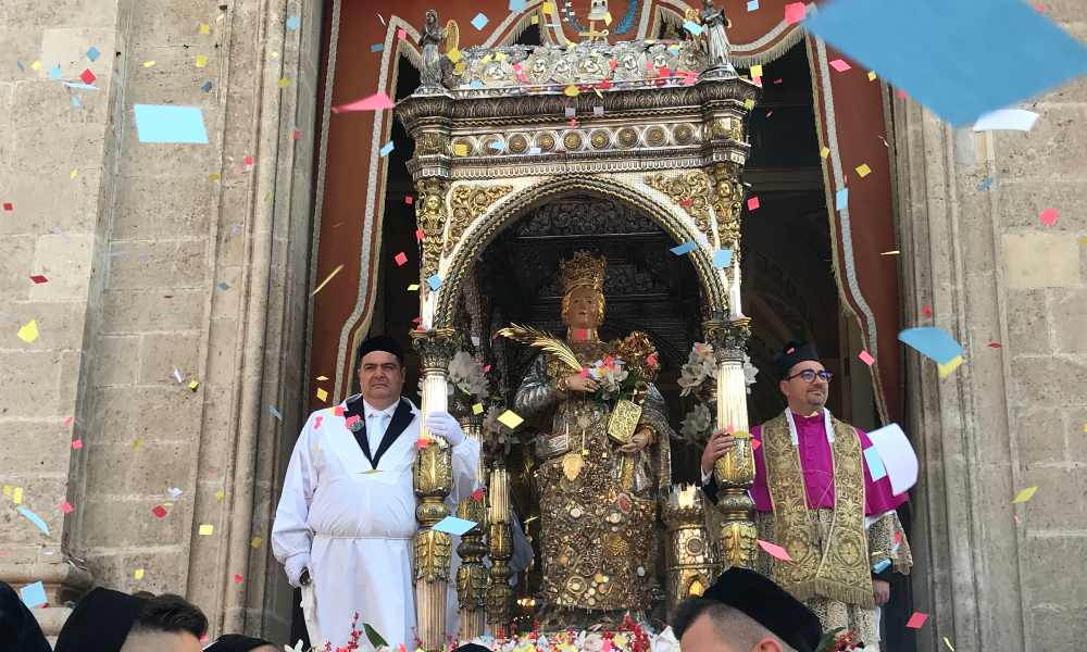 Ad attenderla centinaia di devoti e i cerei in rappresentanza delle antiche corporazioni che accompagneranno il fercolo nel tragitto lungo le strade cittadine, il quale farà una sosta nella chiesetta della Madonna dell’Idria, dove sarà celebrata la Messa. Dopo la sosta il simulacro della martire di Nicodemia si dirigerà verso Piazza Vittorio Veneto dove migliaia di devoti e fedeli attenderanno il tradizionale fuoco di “Sant’Antoni”.