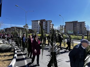 In questo giorno la Chiesa commemora Cristo Signore che entra in Gerusalemme per portare a compimento il suo mistero pasquale. Stamani, a Paternò, si è registrata una grande partecipazione per la benedizione delle palme, un momento di fede vissuto con profonda intensità da una folta comunità di fedeli accorsi in via Alcide de Gasperi per dare vita ad un suggestivo corteo che, dopo la benedizione delle palme , ha attraversato corso del Popolo e viale dei Platani, colorando le strade con i rami d’ulivo intrecciati e i canti della tradizione.