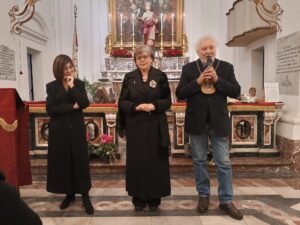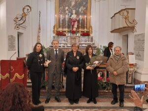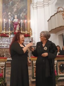 Un appello che è stato prontamente raccolto e rilanciato dal deputato Francesco Ciancitto. Un saluto ai presenti è stato portato anche dal governatore Gaetano Campisano, che da oltre 40 anni considera la chiesa di Santa Caterina la sua seconda casa. Durante la serata, alla professoressa Scalisi è stato consegnato il prestigioso premio, realizzato dal maestro Barbaro Messina, insieme a una serie di gadget offerti dall’associazione “Amici di Sofonisba”.