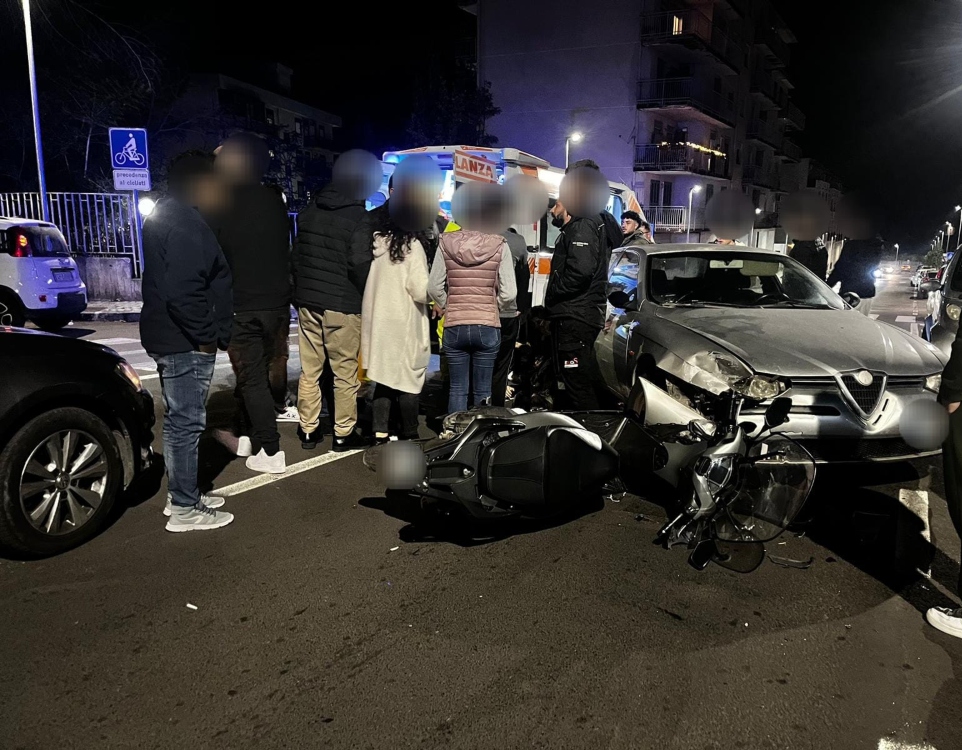 Incidente questa sera intorno alle 20 a Paternò in via Alcide de Gasperi. A scontrarsi, per cause in corso di accertamento una Alfa Romeo 156 e uno scooter Honda SH con a bordo due giovani.