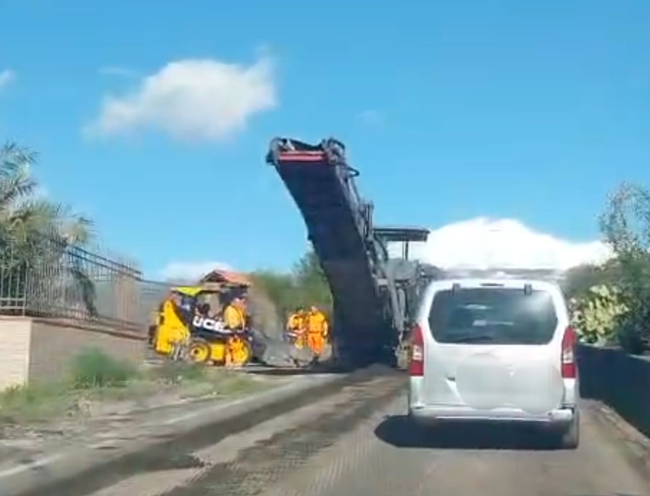Personale della ditta che sta effettuando i lavori ha regolato il traffico, sta attuando il senso unico alternato nel tratto di strada interessato dai lavori non più procrastinabili: l’asfalto era ormai del tutto deteriorato in diversi punti; presenza di avvallamenti lungo la strada ma anche buche.