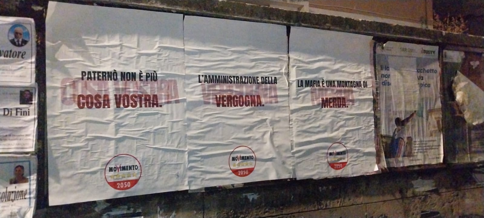 Il primo recita “Paternò non è più cosa vostra”, chiaro riferimento alle dinamiche di potere che avrebbero caratterizzato la precedente amministrazione. Il secondo definisce senza mezzi termini la situazione come “L’Amministrazione della vergogna”, mentre il terzo riporta una frase di forte impatto: “La mafia è una montagna di merda”, citazione che richiama le parole storiche di Peppino Impastato nella sua lotta contro Cosa Nostra.