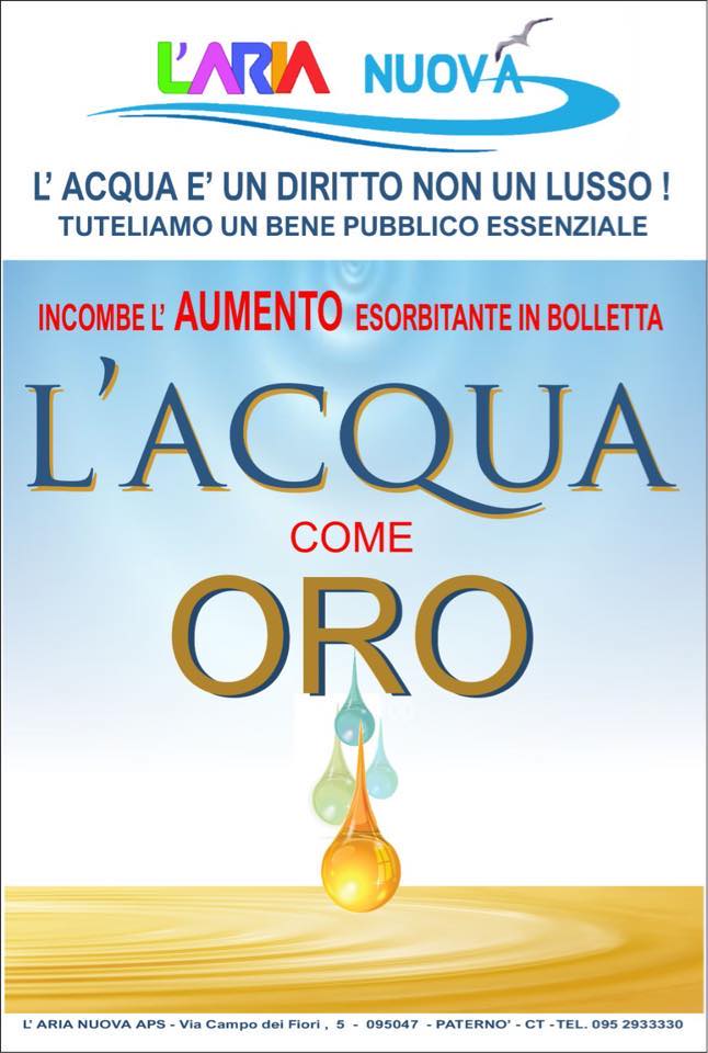 Il rischio dell’aumento esorbitante della tariffa in bolletta è reale e imminente, e la preoccupazione è fortissima per famiglie, cittadini e imprese- dicono i componenti dell’associazione L’Aria Nuova- alcuni sindaci (a dire il vero pochi), paventano il pericolo di un aumento insostenibile del 400% in più rispetto a quanto già paghiamo oggi. L’attivazione dell’ATO ACQUE e le nuove tariffe proposte dall’Autorità Territoriale Idrica (ATI) Catania, fanno presagire questo grave pericolo”.