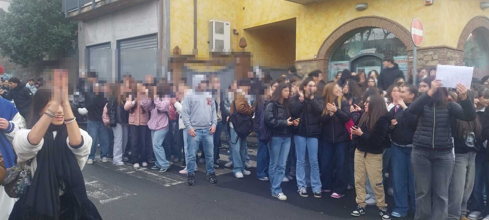 Sciopero stamani davanti all’Istituto F. De Sanctis di Paternò, dove centinaia di studentesse e studenti hanno manifestato aderendo a una giornata di protesta.