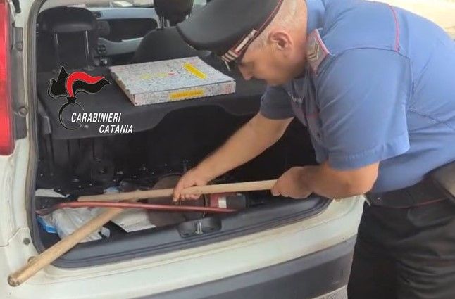 Dopo pochi giorni, a fine novembre, una pattuglia impegnata nei servizi di controllo del territorio, nell’intercettare un’autovettura sospetta, ferma in una zona residenziale di Pedara, con a bordo una persona , aveva modo di rinvenire al suo interno , strumenti di effrazione di vario genere, due targhe, un telefono, delle mascherine chirurgiche ed un cartone per la pizza, oltre che un set di posate, risultato rubato, assieme ad altri preziosi, da una villetta ubicata nelle immediate vicinanze , la cui porta finestra era stata tagliata, verosimilmente, proprio con un flex.