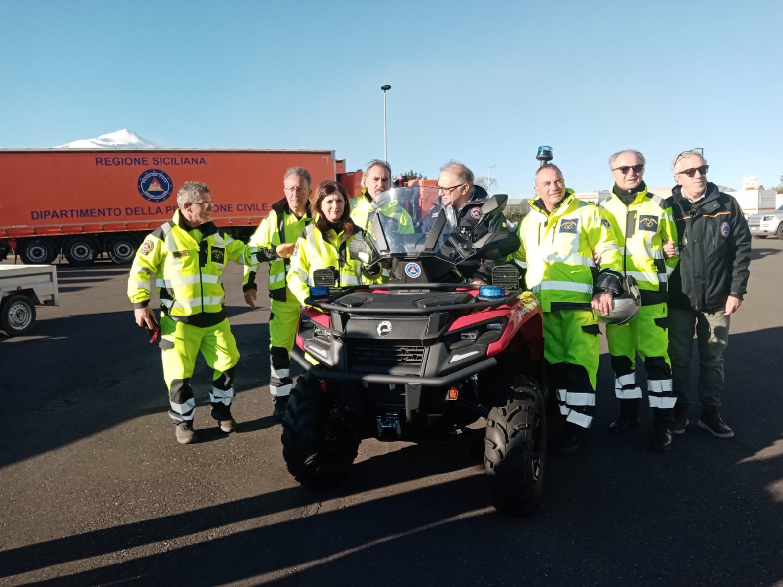 È stato consegnato oggi, alla presenza del Capo Dipartimento Regionale Salvo Cocina – presso la sede del DRPC Sicilia di San Giovanni La Punta – un quad dotato di cingoli e pala spazzaneve all’Associazione Rangers Europa di Nicolosi, nell’ambito del potenziamento delle dotazioni del sistema regionale di protezione civile. Il nuovo equipaggiamento rappresenta un importante rafforzamento delle capacità operative dell’associazione di volontariato, già punto di riferimento sul territorio etneo nel settore della protezione civile e del soccorso specialistico in quota. Non si tratta di un semplice quad, quello consegnato oggi, ma di un mezzo a quattro ruote potenziato grazie all’integrazione di cingoli per la mobilità su terreni difficili e una pala spazzaneve, che permetterà ai volontari di ampliare significativamente il raggio d’azione nelle attività di soccorso e ricerca.