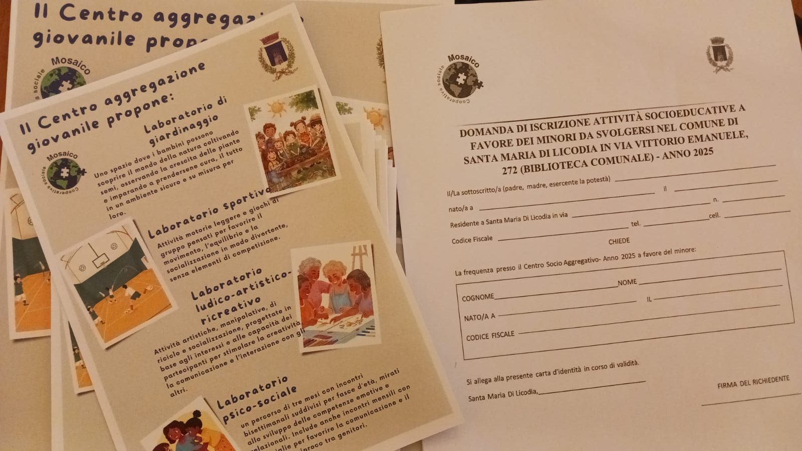 Si è tenuto questa mattina, all’interno della sala consiliare del Comune di Santa Maria di Licodia, la presentazione ufficiale del nuovo Centro di Aggregazione Giovanile, che avrà sede presso la Biblioteca comunale. Il progetto, rivolto a bambini e ragazzi dai 3 ai 17 anni, prevede due incontri pomeridiani settimanali, dalle 15:00 alle 18:00. All’incontro hanno partecipato il Sindaco Giovanni Buttò, la Vicesindaco Dott.ssa Mirella Rizzo (in collegamento online) il Responsabile del Settore, Dott.ssa Conti Bellocchi e la Dott.ssa Anna Sanfilippo, coordinatrice dei servizi della Cooperativa Mosaico.