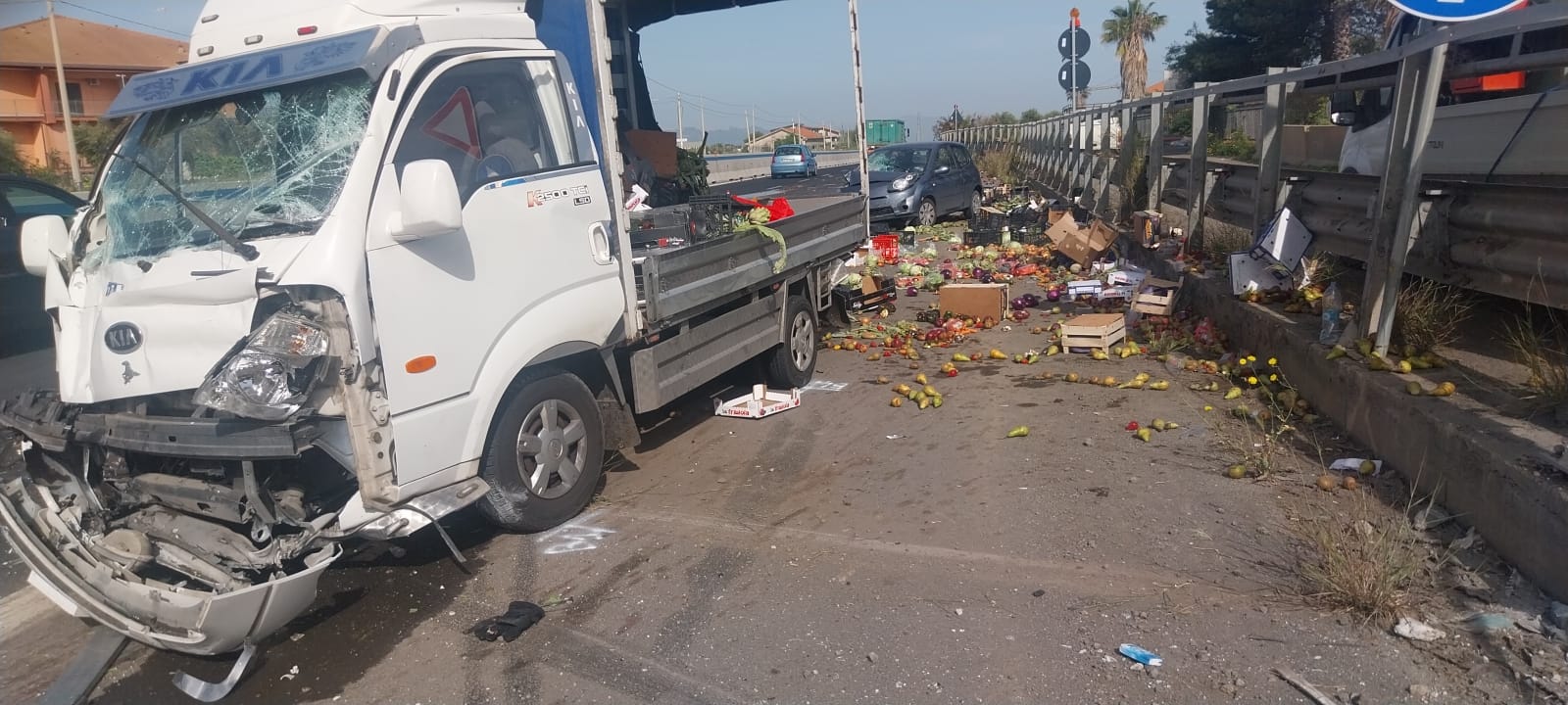 Incidente questa mattina intorno alle 8:00 sulla SS121, all’altezza dello svincolo per Palazzolo in direzione Paternò. Coinvolti un furgone Kia, carico di frutta e verdura, e una Renault Twingo.